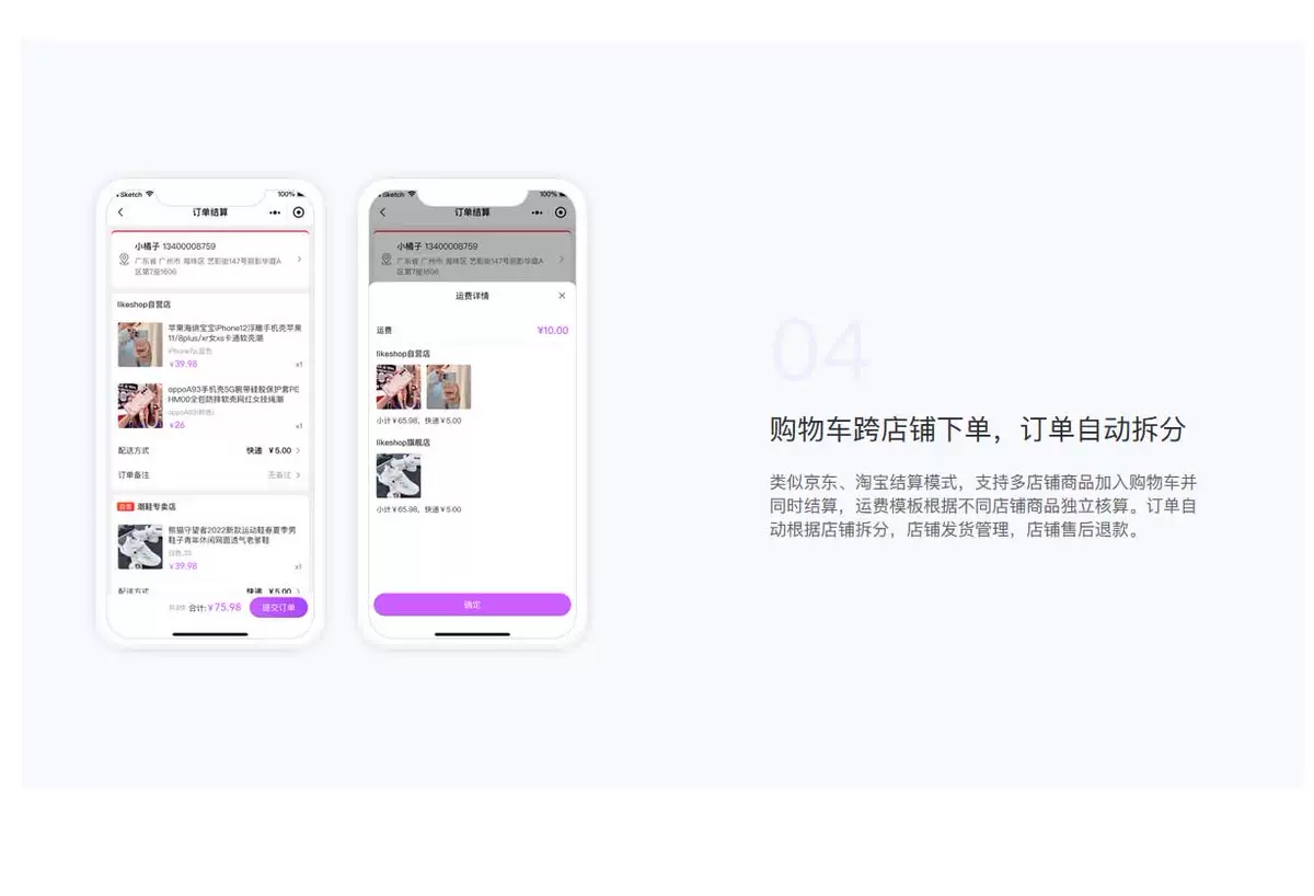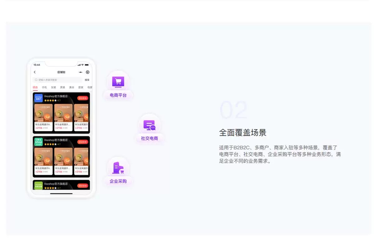 • 适用于 B2B2C、多商户、商家入驻、平台商城等多种场景。